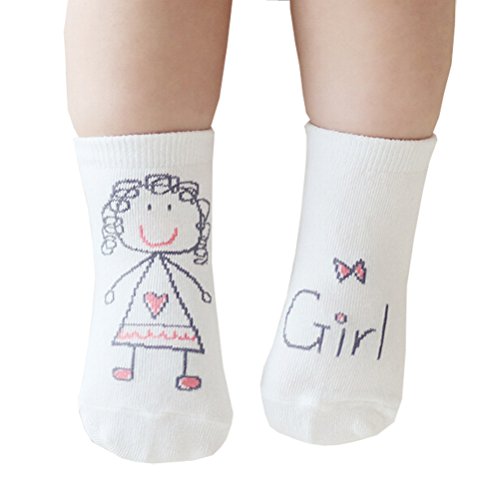 ベビー幼児ボーイズガールズの漫画滑り止めソックスコットンクルーウォーカー (S(0-2歳), ガール)