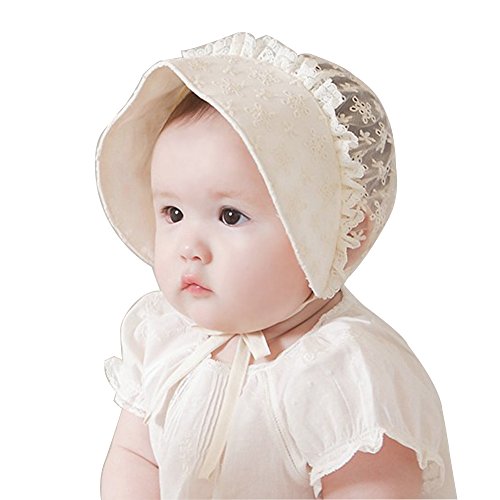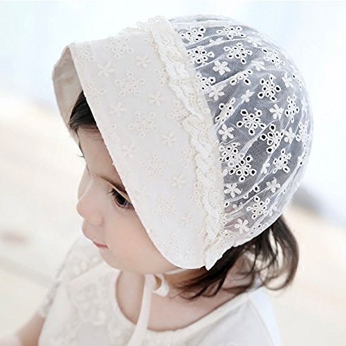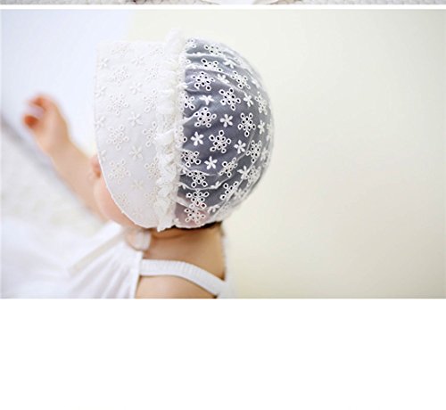 秋 子供ベビー 白 綿ニット帽子 レースキャップ 3-18ヶ月 赤ちゃん キッズ 薄いコットン帽子 可愛い レース  (白)