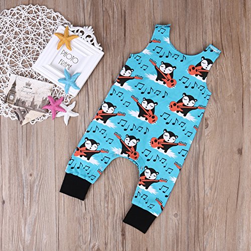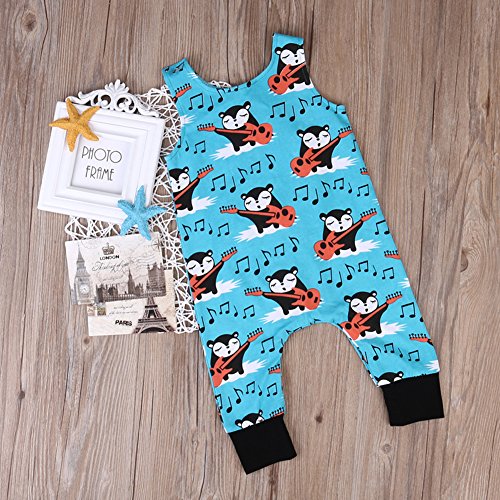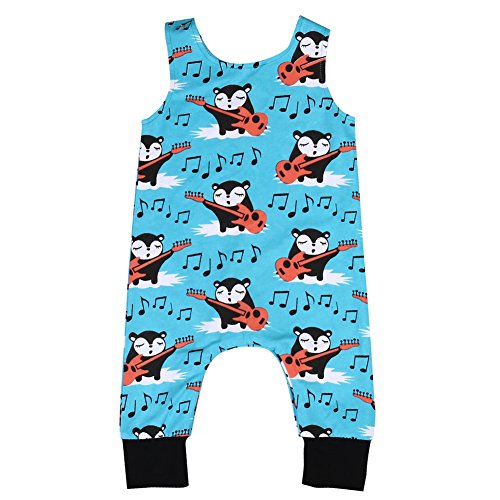 新生児の少年少女 夏の袖無し狐の印刷 ロンパース カバーオール ボディスーツ (18-24ヶ月, 青)