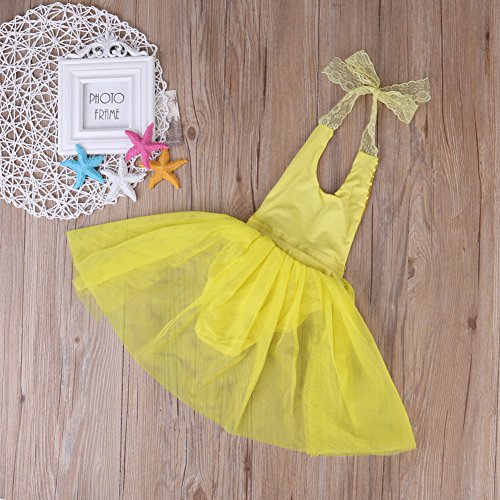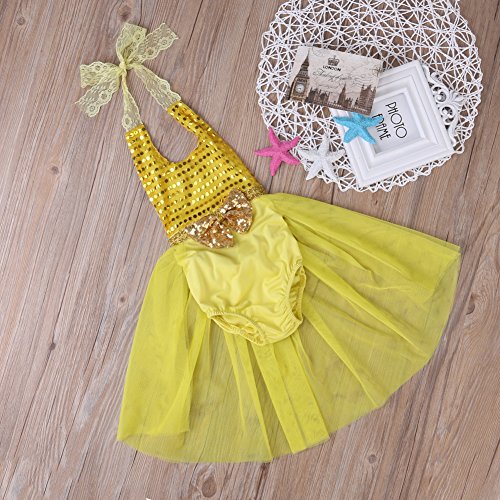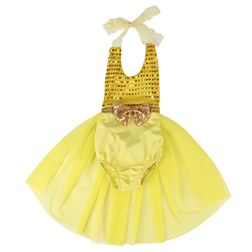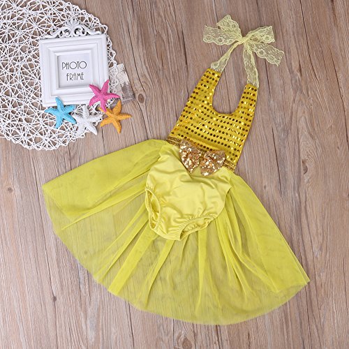 ベビーガール スパンコール ロンパース 袖無し夏 発表会 入園式 結婚式 出産祝い パーティードレス (2-3歳, 黄)
