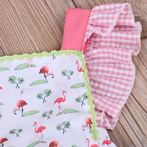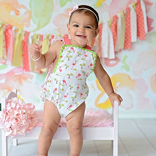 新生児の女の子 綿100% 袖無し バックレス 動物柄 夏のロンパース カバーオール (0-6ヶ月, 白)