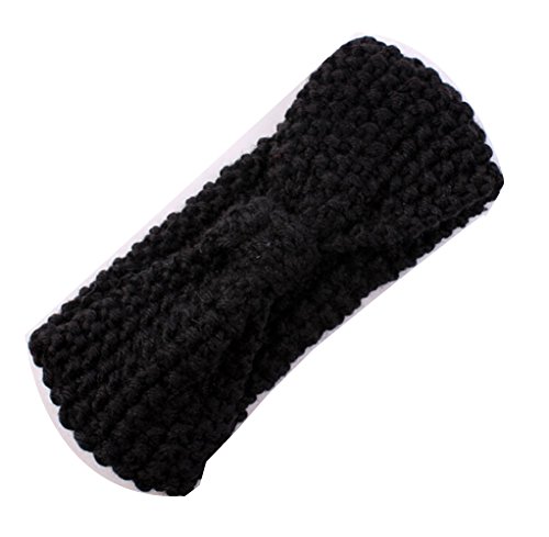 冬秋 赤ちゃヘアバンド 超萌え子供ヘアアクセサリー ボヘミアン風 編みウールキャップ 編みイヤーマフ (黑)