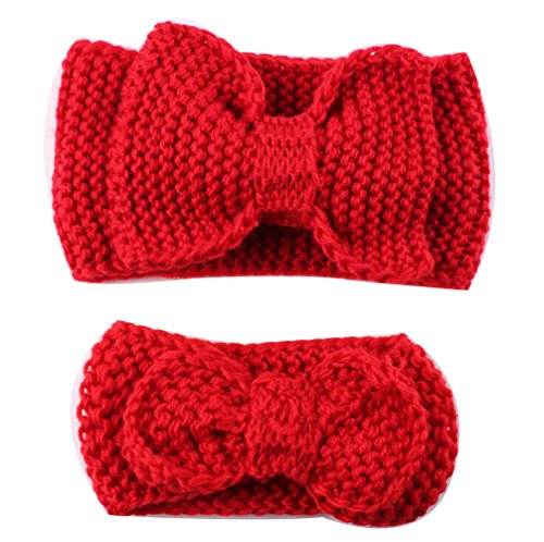 赤ちゃとマザー 親子ヘアバンド 冬秋 蝶結び 超萌え子供 母親ヘアアクセサリー 編みウールキャップ 編みイヤーマフ 母とベビー 遊び ヘアバンド (赤)