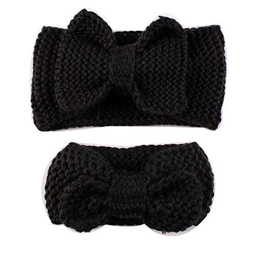 赤ちゃとマザー 親子ヘアバンド 冬秋 蝶結び 超萌え子供 母親ヘアアクセサリー 編みウールキャップ 編みイヤーマフ 母とベビー 遊び ヘアバンド (黑)