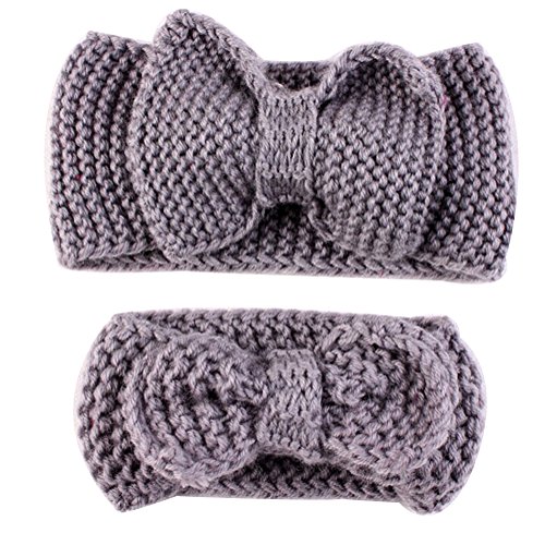 赤ちゃとマザー 親子ヘアバンド 冬秋 蝶結び 超萌え子供 母親ヘアアクセサリー 編みウールキャップ 編みイヤーマフ 母とベビー 遊び ヘアバンド (グレー)