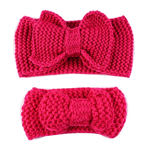 赤ちゃとマザー 親子ヘアバンド 冬秋 蝶結び 超萌え子供 母親ヘアアクセサリー 編みウールキャップ 編みイヤーマフ 母とベビー 遊び ヘアバンド (バラ色)