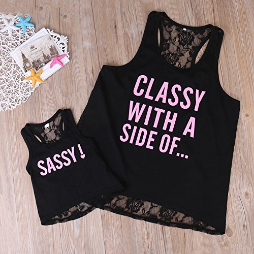 - 手紙の印刷、背中のレース、ノースリーブ、家族のタンクトップ