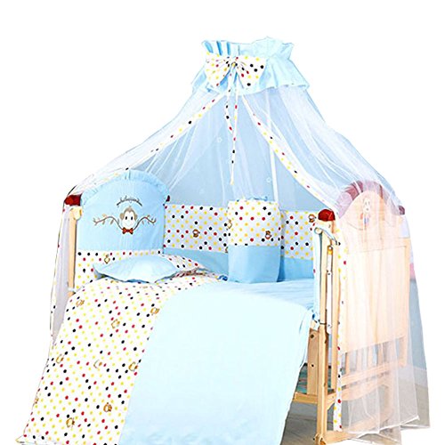 無塗装木製ベビーベッド ロングユース プレイヤード YUBEILE 天蓋蚊帳付 お布団セット付 ガードセット付 3段階調整 (ブルー)