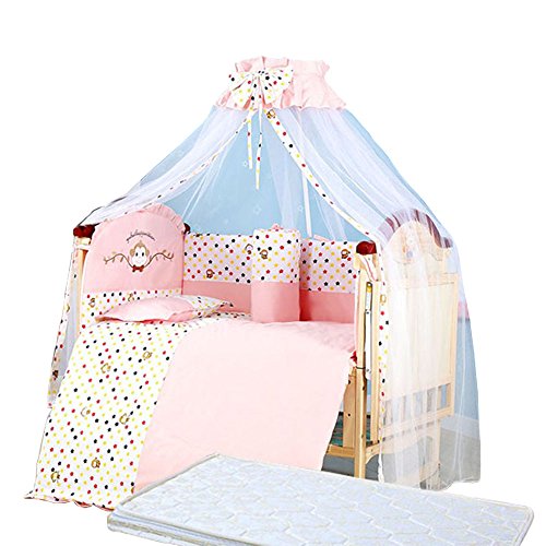 - セット内容:1.無塗装木製ベビーベッド、2.ベビーベッドガードセット、3.マットレス、4.天蓋蚊帳、5.お布団3点セット (薄手敷布団+掛け布団+枕)