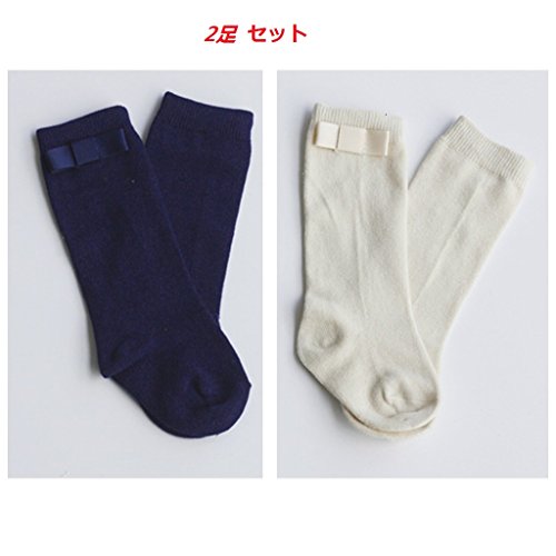 YUEGUANG 子供ソックス キッズ ソックス 2足2色セット 可愛い ハイソックス 靴下 子供 暖かい 厚手 防寒 カジュアル ひざ下 お出かけ パーティー 七五三 入園 卒園式 カラフル 選べる (M码(3~5歳), セット(ベージュ+ネイビー))