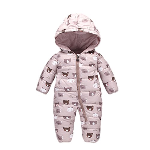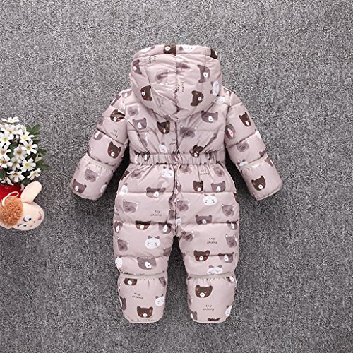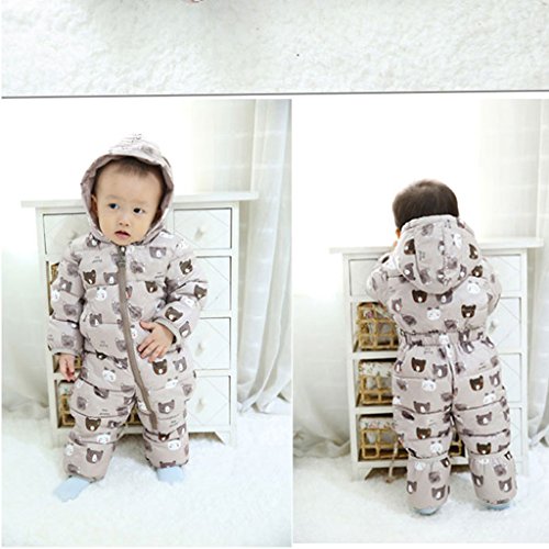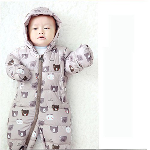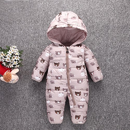 YUEGUANG ベビー服 新生児服 カバーオール ダウンロンパース 女の子 男の子 ジャンプスーツ ウンコート 防寒 保温 秋冬用 赤ちゃん 可愛い 爬行服 フード付き アウターウェア (90cm, コーヒー色)