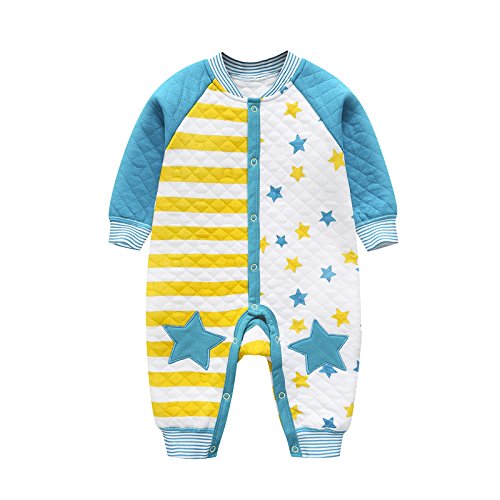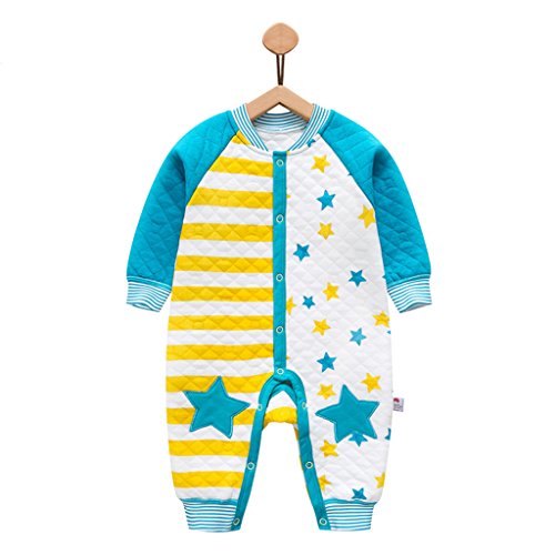 YUEGUANG ベビー服 新生児服 ロンパース カバーオールロ 星柄 コットン100% 前開き 長袖 可愛い かっこいい おしゃれ 春秋冬 カジュアル 新生児 男の子 女の子 出産祝い (90cm, イエロー)