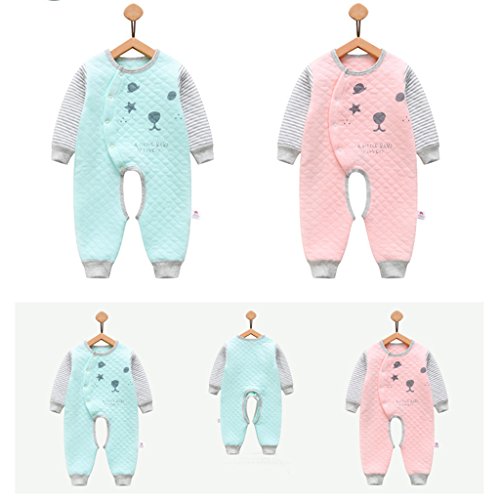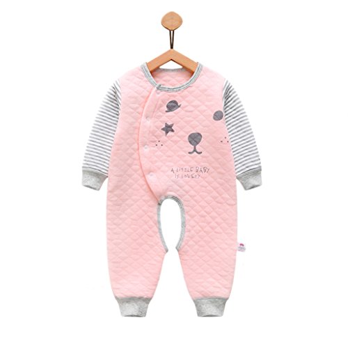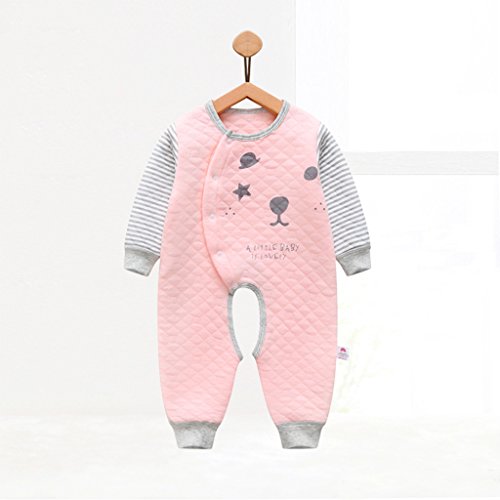 YUEGUANG ベビー服 新生児服 ロンパース カバーオールロ コットン100% 前開き 長袖 可愛い 春秋冬 カジュアル 新生児 男の子 女の子 出産祝い (80cm, ピンク)