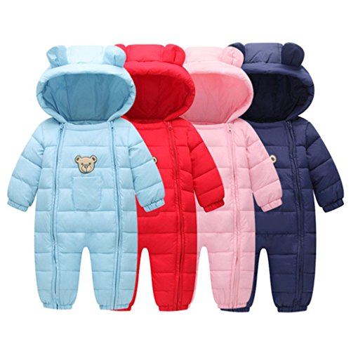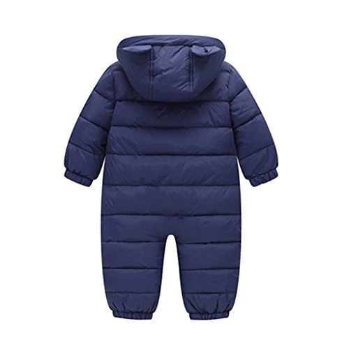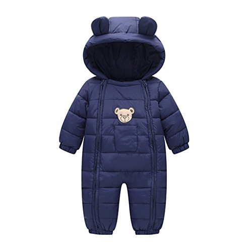 YUEGUANG ベビー服 新生児服 カバーオール ダウンロンパース 女の子 男の子 ジャンプスーツ ウンコート 防寒 保温 秋冬用 赤ちゃん 可愛い 爬行服 フード付き アウターウェア (100cm, ネイビー)