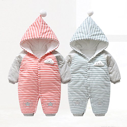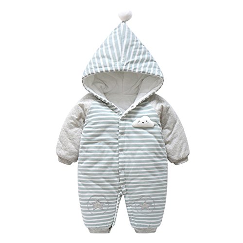 YUEGUANG 赤ちゃん ベビー服 新生児服 ロンパース カバーオール フード付き 綿100% 可愛い 爬行服 ジャンプスーツ 長袖防寒着 秋冬 アウターウェア 出産祝い (グリーン, 73cm)