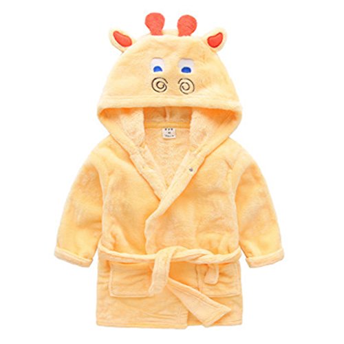 YUEGUANG 子ども用バスローブ バスローブ キッズ もこもこ フランネル ニマル バスタオル ベビー バスローブ ルームウェア かわいい フード付 出産祝い ギフトに さわり心地抜群 (M(対応身長95~110cm), イエロー)
