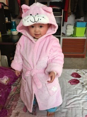 - キッズ用もこもこバスローブ、かわいいアニマルフード付き