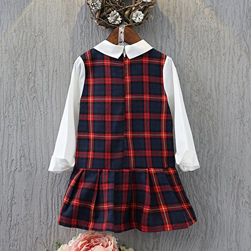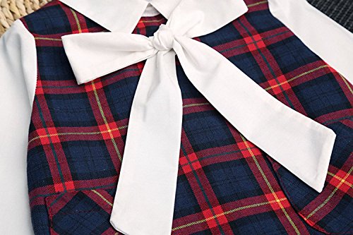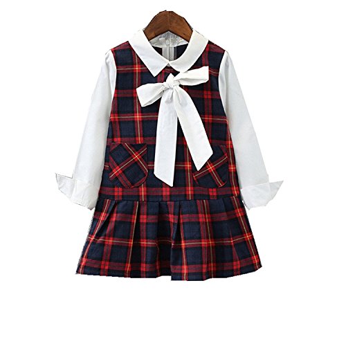 YUEGUANG 子供服 女の子フォーマルドレス チェック柄 韓国風 女の子 ワンピ ドレス ブラックワンピ+Tシャツ 上品 ジュニアドレス ワンピース フォーマルドレス 洋服 長袖 発表会 七五三 入園式 卒園式 冠婚葬祭 結婚式 パーティー 女の子 キッズ ワンピース リボン飾り (100cm)
