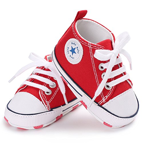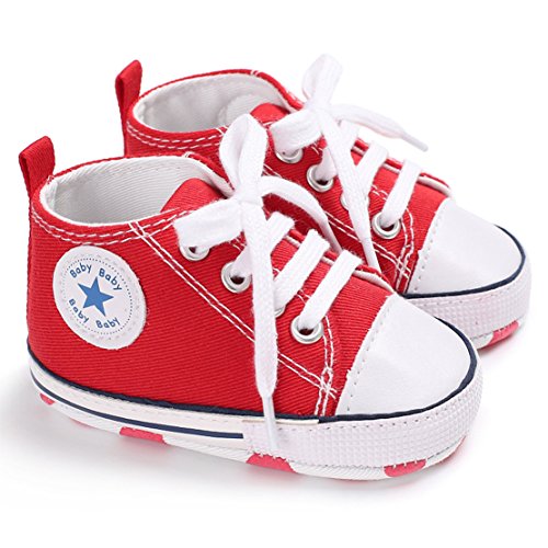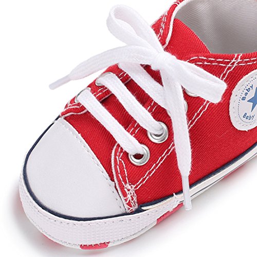 赤ん坊のような柔らかい底のキャンバスの幼児の靴 (12cm:6-12月, レッド)