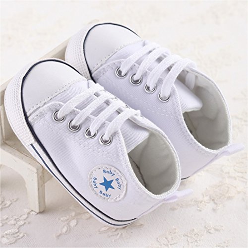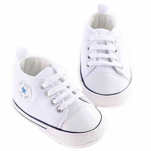 赤ん坊のような柔らかい底のキャンバスの幼児の靴 (11cm:0-6月, ホワイト)