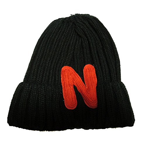 ( YUNA ) ユナ キッズ ボーイズ ガールズ アルファベット ワッペン リブ編み ベーシック ニット帽 ( ブラック ) キッズ ビーニー ベビー キャップ ニット帽子 子ども 男の子 女の子 48cm 50cm 52cm 54cm 56cm