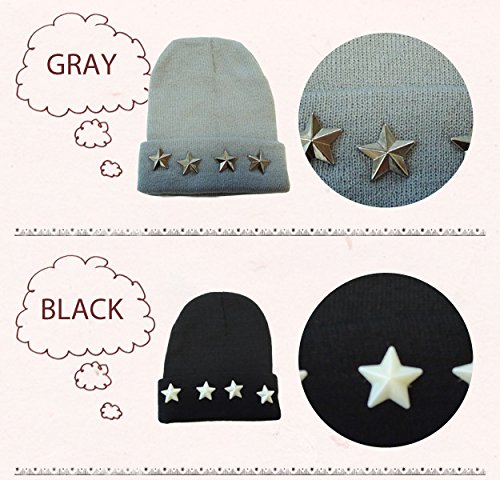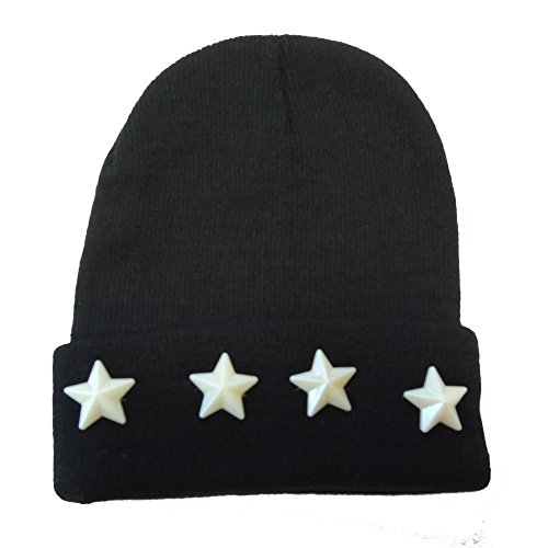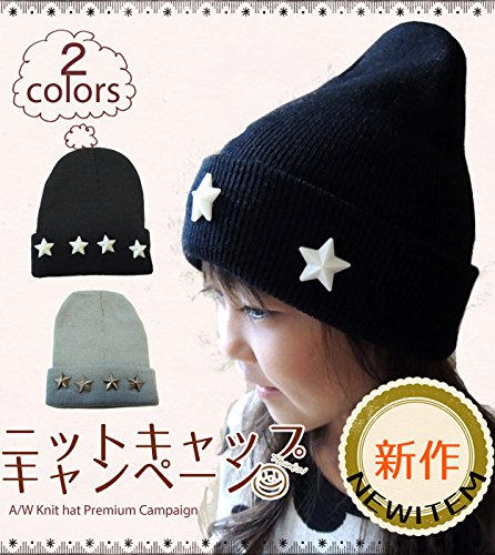 ( YUNA ) ユナ キッズ ボーイズ ガールズ スター スタッズ リブ編み ベーシック ニット帽 48~58cm くらい まで ( ブラック ) ニット帽 キッズ ビーニー ベビー キャップ ニット帽子 子ども 男の子 女の子 ボーイズ ガールズ 48cm 50cm 52cm 54cm 56cm
