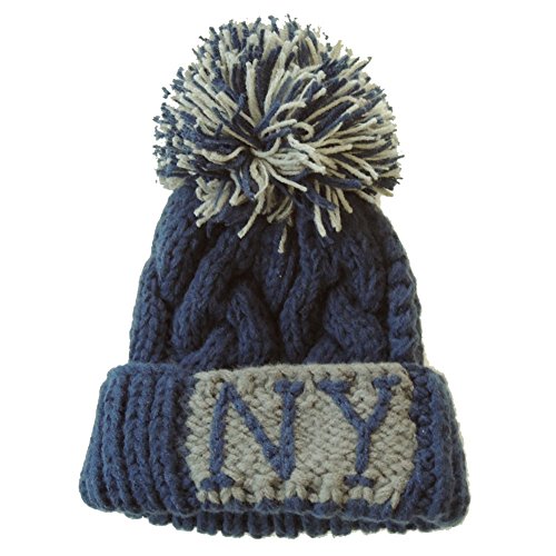 ( YUNA ) ユナ 手編み ビック ボンボン ツートン リブ編み NY ロゴ ニット帽 48~58cm くらい まで ( ネイビー ) ニット帽 キッズ ベビー キャップ ニット帽子 子ども 男の子 女の子 ボーイズ ガールズ 48cm 50cm 52cm 54cm 56cm
