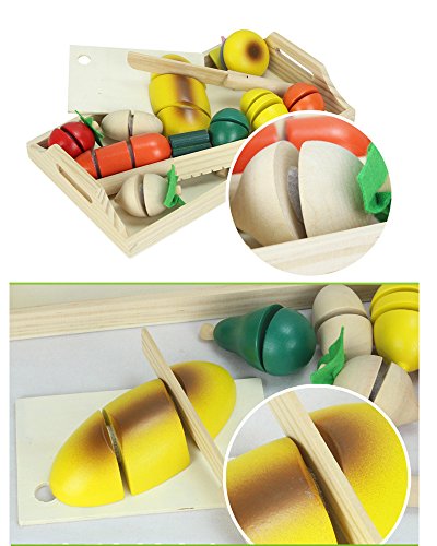 YUNT子供のフルーツパンや野菜は家の台所のおもちゃ木製子供の知育玩具のシミュレーションパッケージを再生します