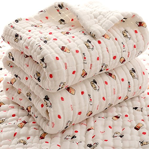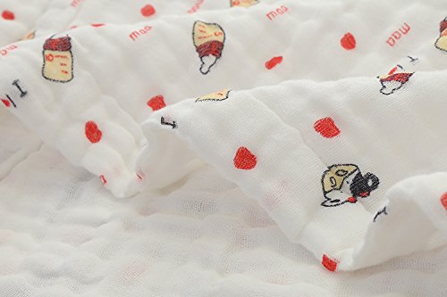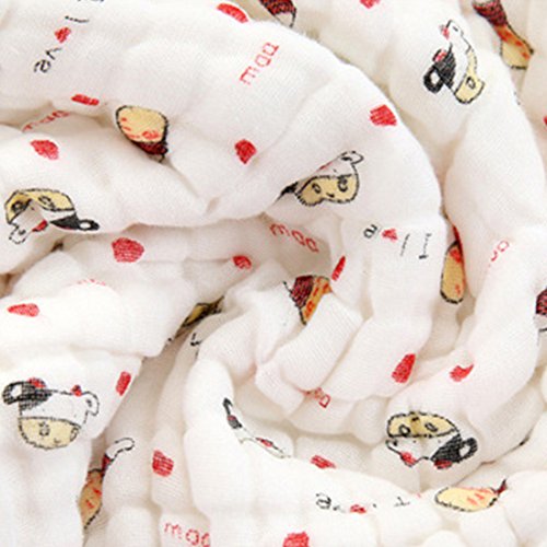 6重のガーゼと100%綿のコンビネーション、吸水性が最高、瞬間乾き、無蛍光な材料が赤ちゃんの肌に最適です。天然材料のガーゼと綿で作られたバスタオルは、綿の吸水性と柔らかいを持続させ、ガーゼの弾性と完璧に発揮させ、ザラザラしない、静電しない、お母さんの手のような温かさが感じます。 厚さ,暖かさはちょうど良いです。 食べ物をよく吐き出す赤ちやんにガーゼは最適で、赤ちやんのデリケートの顔に不適感がすぐなくなります。食卓ではおしぼりとして使うこともできます。