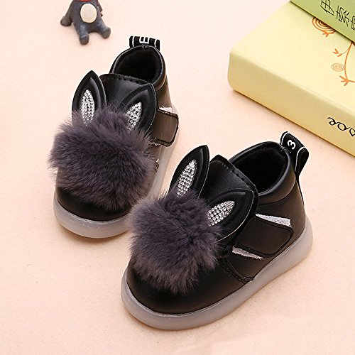 【YW】 冬の季節の赤ちゃんの革靴 赤ん坊女 亮の靴が 学步靴 プリンセス靴赤ちゃんの綿靴 (25:15cm, 黒い)