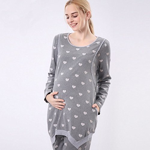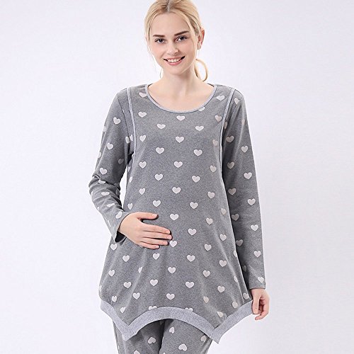 【YW】妊婦衣装女性の服 秋冬パジャマ ママ授乳外出する服装 (XXL, グレー)