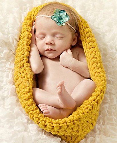 【YW】 新生児寝袋 新生児毛布 手作りの编物寝袋 赤ちゃんの撮影の衣装 (黄色)