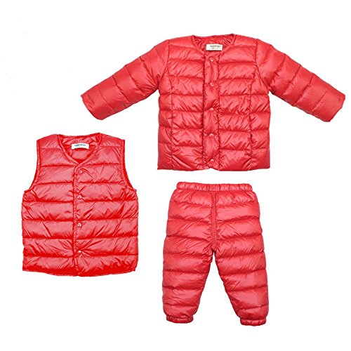 【YW】ダウンジャケットセット ベビー・ダウンジャケットコートとズボンとチョッキ無地のコート (80cm, 赤い)