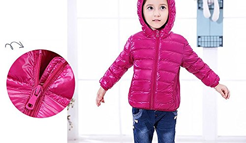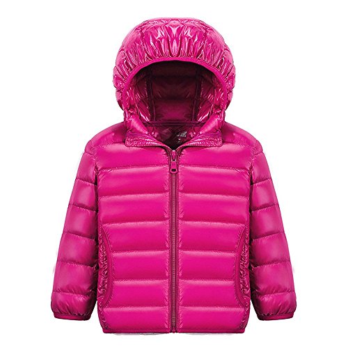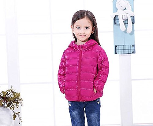 【YW】ダウンジャケット ファスナー帯帽ダウンジャケット無地のダウンジャケット (150cm, 淺紅)