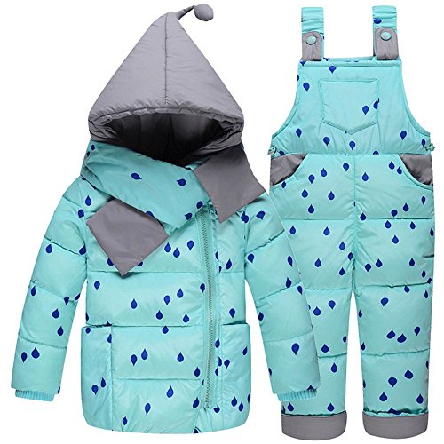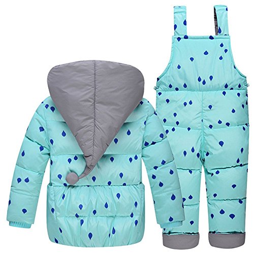 【YW】ベビーコート・ジャンパー 児童羽毛ジャケットセット服とズボンが 男女赤ちゃんまだら羽毛ジャケット (100cm, 靑い)