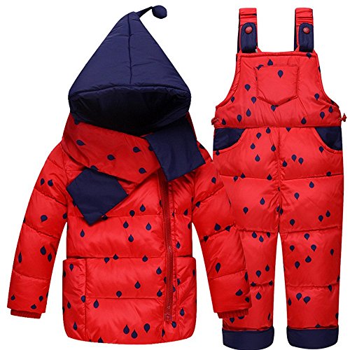 【YW】ベビーコート・ジャンパー 児童羽毛ジャケットセット服とズボンが 男女赤ちゃんまだら羽毛ジャケット (90cm, 赤い)