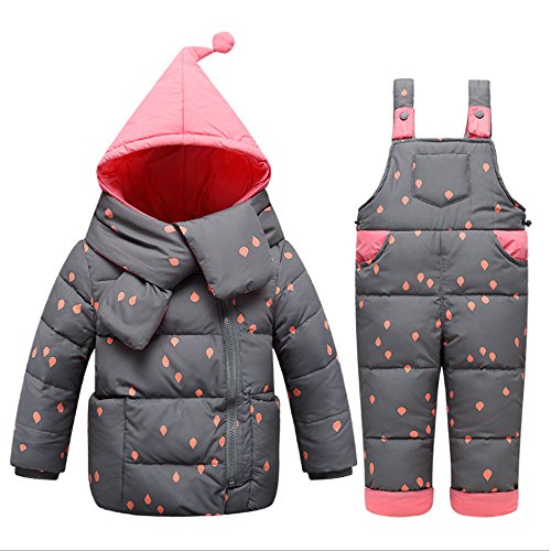【YW】ベビーコート・ジャンパー 児童羽毛ジャケットセット服とズボンが 男女赤ちゃんまだら羽毛ジャケット (80cm, グレー)