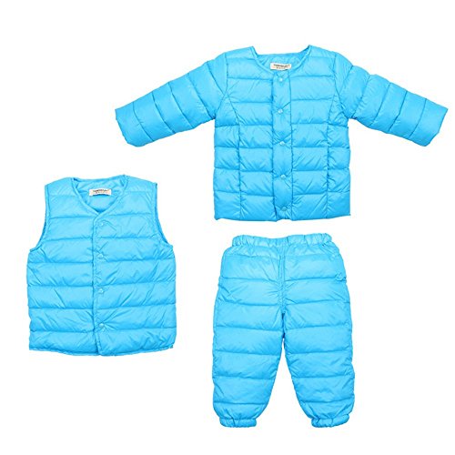 【YW】ダウンジャケットセット ベビー・ダウンジャケットコートとズボンとチョッキ無地のコート (70cm, 靑い)
