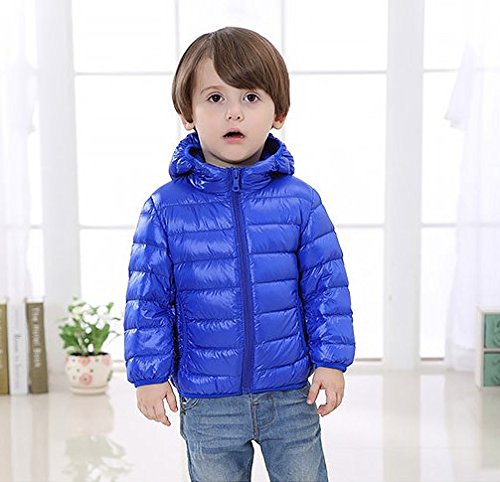 【YW】ダウンジャケット ファスナー帯帽ダウンジャケット無地のダウンジャケット (160cm, 靑い)