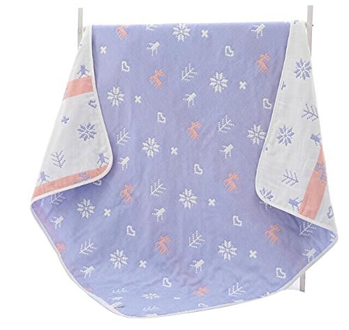 毛布 ケット ベビー ガーゼ 6重織ガーゼケット 柄 おでかけサイズ 110×110cm 綿100%素材 (パープル-スノーフレーク)