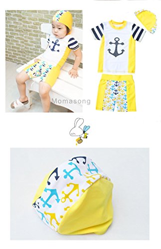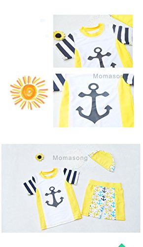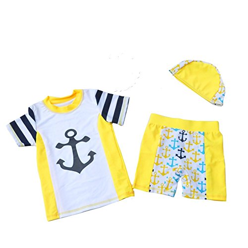 子供服 水着 帽子付き 3点セット 子供 男児 水着 ラッシュガード 男の子 キッズ水着 キッズ スイムウエア UVカット YY-SHOP (4T(身長85-95CM))