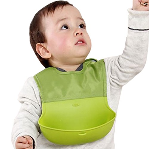 YY-Shop ベビー エプロン 食事 シリコン お食事用防水ビブ 離乳食 赤ちゃん 幼児 食べこぼしポケット付 コンパクト お出かけ 軽量 0~3歳 (2グリーン)