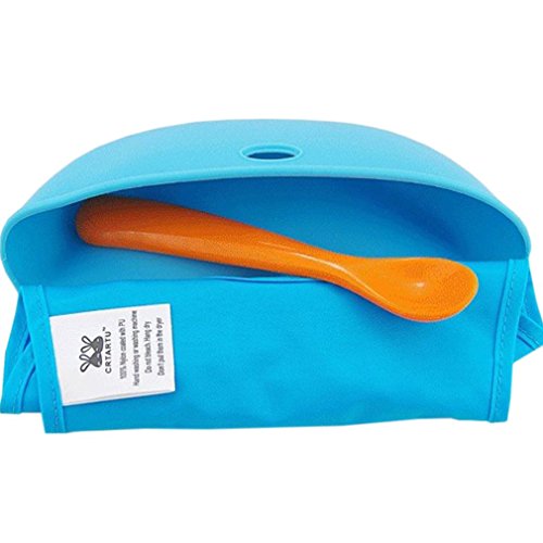 YY-Shop ベビー エプロン 食事 シリコン お食事用防水ビブ 離乳食 赤ちゃん 幼児 食べこぼしポケット付 コンパクト お出かけ 軽量 0~3歳 (1ブルー)
