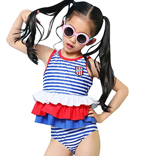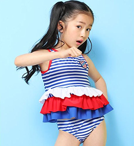 YY-Natuhi ベビー 女の子 水着 幼児 子供 ビキニ セパレート キッズ かわいい ガールズ スイムウェア 女児水着 水泳 UVカット 海水浴 ストライブ柄 2~6歳 水泳帽付き (L(身長105~120cm))