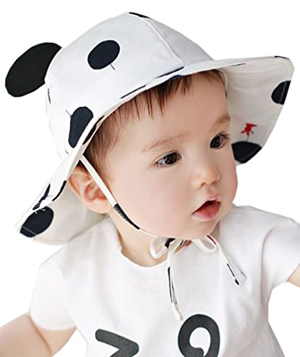 YY-Shop ベビー帽子 つば付き バケットハット キッズ ハット 子供 キャップ 赤ちゃん 日焼け UV 可愛い サファリハット 水玉 春夏 男の子 女の子 (2ブラック)