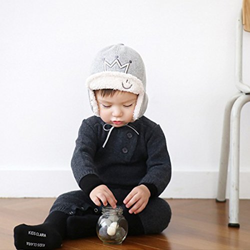 YY-Shop ベビー帽子 パイロット帽子 男の子 女の子 秋冬 キャップ 飛行帽 キッズ 子供 もこもこ 防寒 防風 アウトドア 裏起毛 綿 耳まであったか(6ヶ月~24ヶ月) (1グレー)