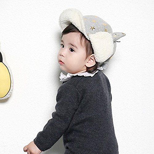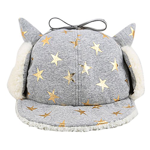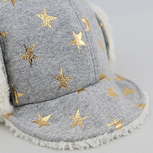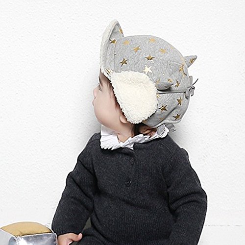 YY-Shop ベビー帽子 パイロット帽子 男の子 女の子 秋冬 キャップ 飛行帽 キッズ 子供 もこもこ 防寒 防風 アウトドア 裏起毛 星柄 耳あて付き(6ヶ月~24ヶ月) (2グレー)