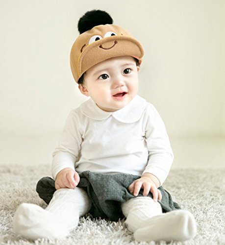 YY-Shop ベビー帽子 キャップ ラシャ 男の子 女の子 ハンチング 秋冬 ボンボン付き キッズ 子供 もこもこ 防寒 防風 アウトドア ハット 通園 かわいい(6ヶ月~24ヶ月) (2ブラウン)