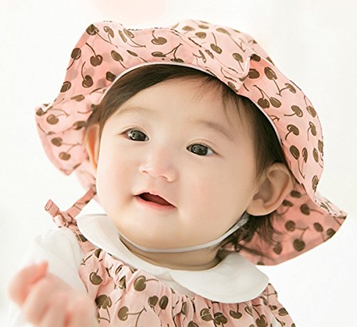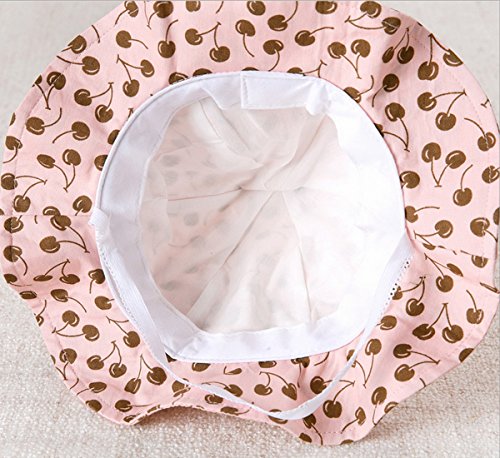 YY-Natuhi ベビー 帽子 女の子 新生児 日よけ帽子 春夏 キッズ バケットハット サンバイザー 赤ちゃん用ハット かわいい つば付き uvカット 女児 100%綿 チェリー柄 6~12ヶ月 (2ピンク)