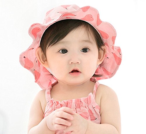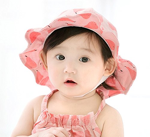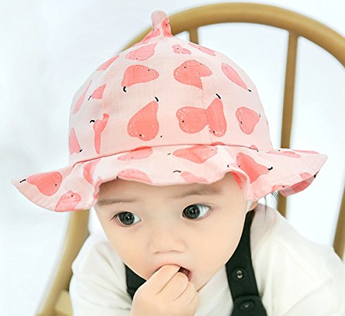 YY-Natuhi ベビー 帽子 女の子 新生児 日よけ帽子 春夏 キッズ バケットハット サンバイザー 赤ちゃん用ハット かわいい つば付き uvカット 女児 100%綿 フルーツ柄 6~12ヶ月 (3ピンク)